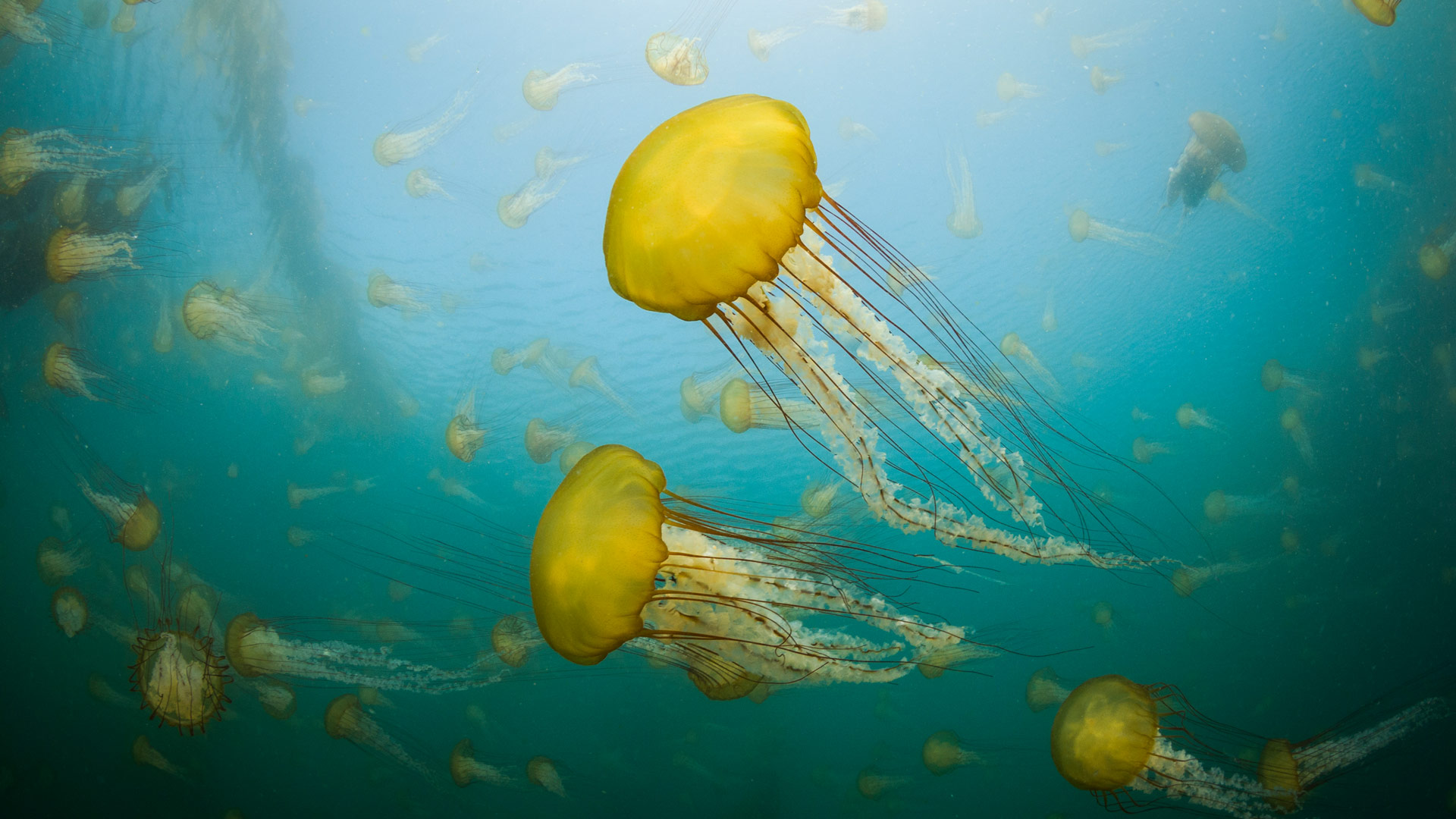 Pacific sea nettles off the coast of 卡梅尔, 加利福尼亚州 (© Jim Patterson/Tandem Stills + Motion)